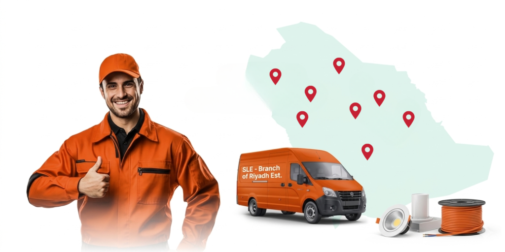SLE – Branch of Riyadh Est is a trusted supplier of high-quality lighting and electrical materials in Saudi Arabia, supporting residential, commercial, industrial, and large-scale contracting projects with reliable products and professional expertise.